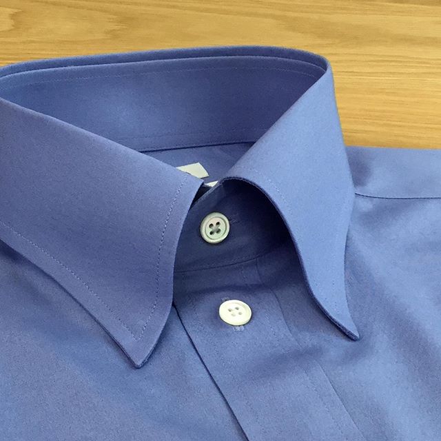 スーピマのロイヤルブルーで、スナップダウンに仕立てた一枚。