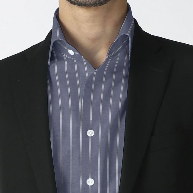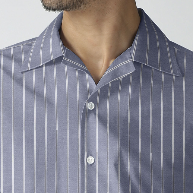 ピンオックスストライプ-ネイビー | 少し太めの柄のストライプ。ドレスシャツ向き。