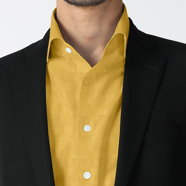 麻リネン-オレンジイエロー | リネンの荒織りの洗いざらしの無地。明るいオレンジイエロー。カジュアルシャツ向き。