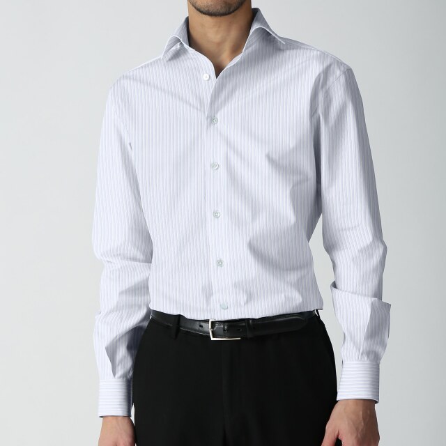 ツイルストライプ-ブルー | 細かい斜め綾にブルーの細い交互縞。ドレスシャツ向き。