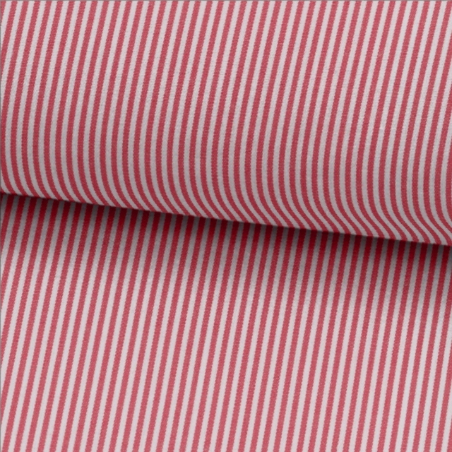サウザンドストライプ-レッド | レッドの単調な細め1.5ミリ前後のストライプ。ビジネスシャツ向き。