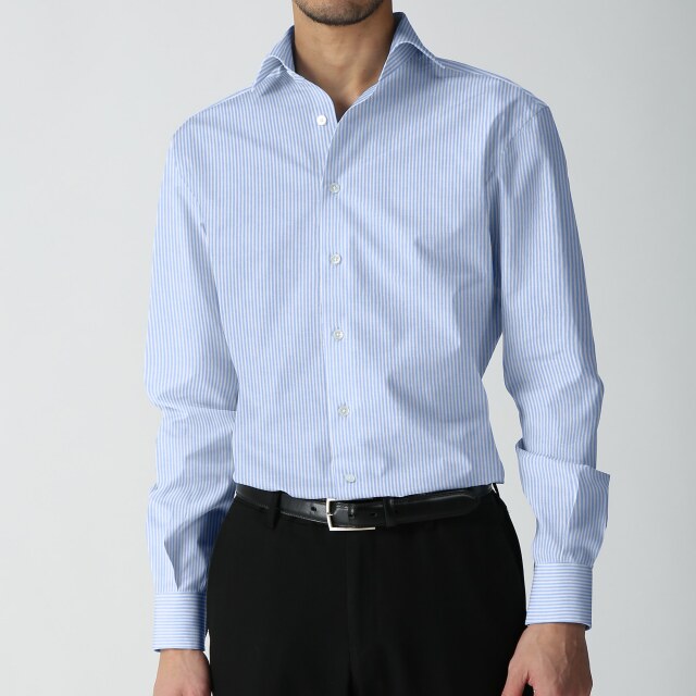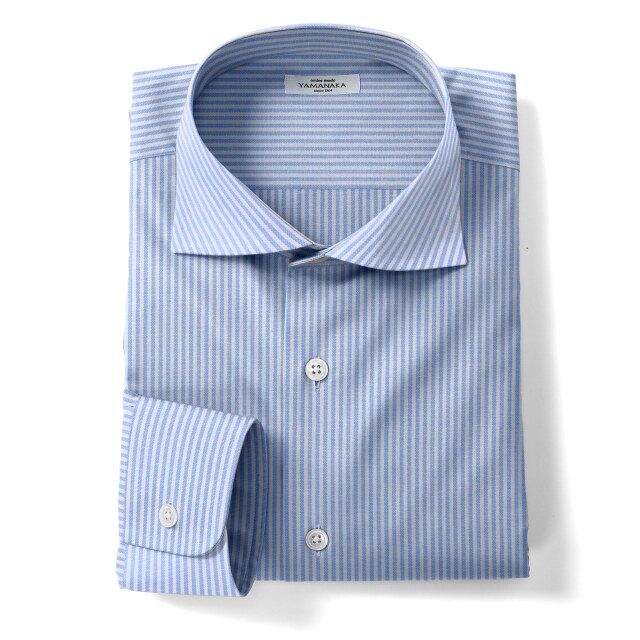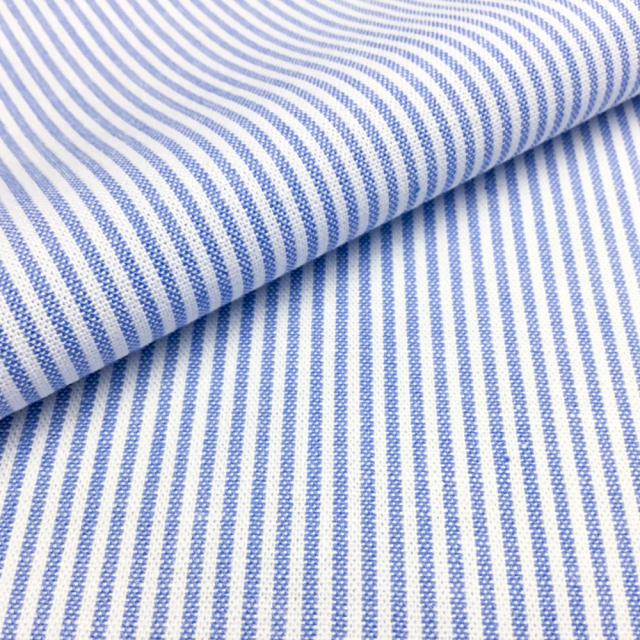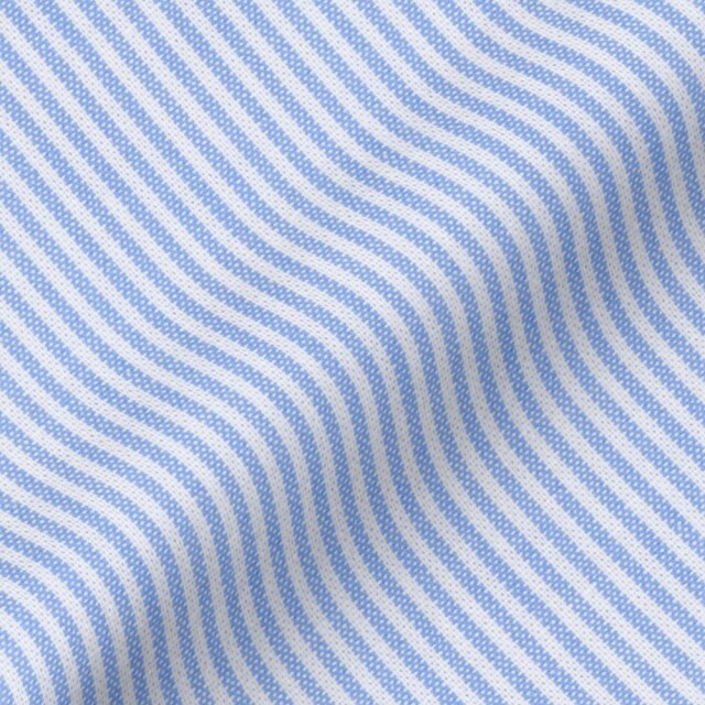 オックスストライプ-サックス | 薄めのオックスフォードで、淡いブルーのストライプ。カジュアルシャツ向き。