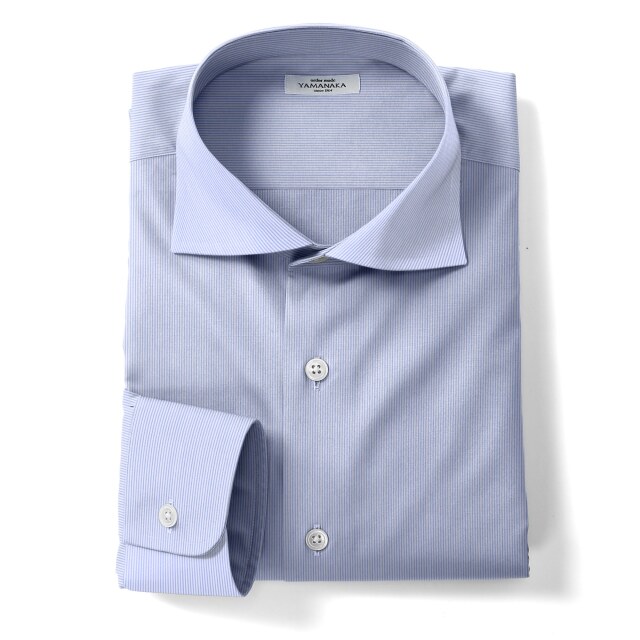 ピンスト-サックス | ブルーの細い単調縞。細めのピンストライプ。ビジネスシャツ向き。