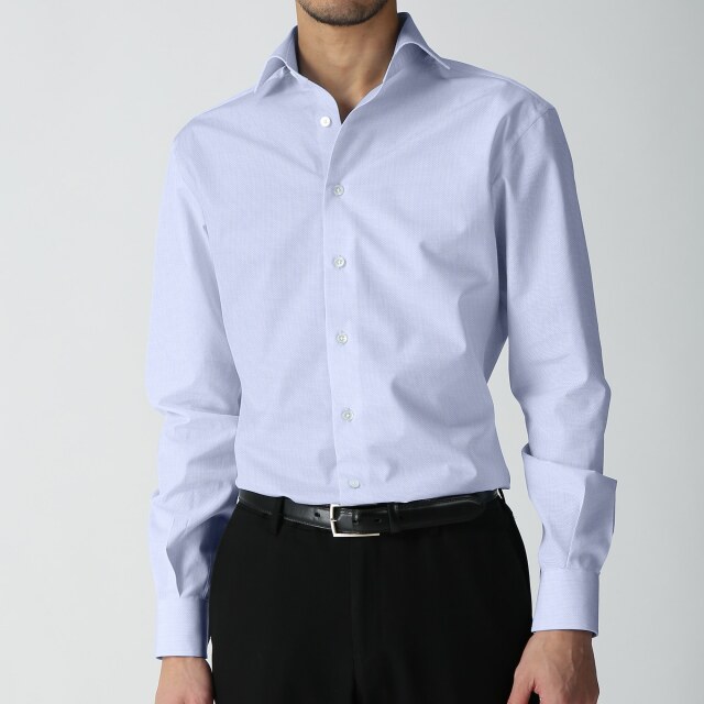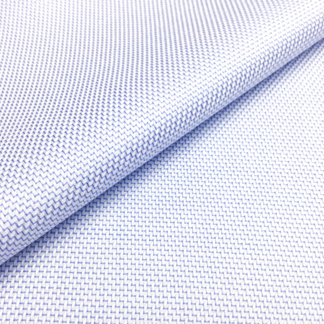 綾ドビー-サックス- | 白地にサックスの階段状の織り柄。ビジネスシャツ向き。