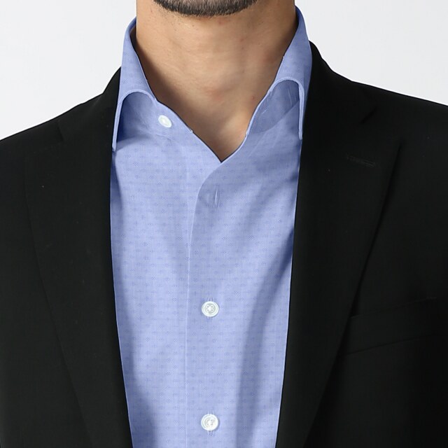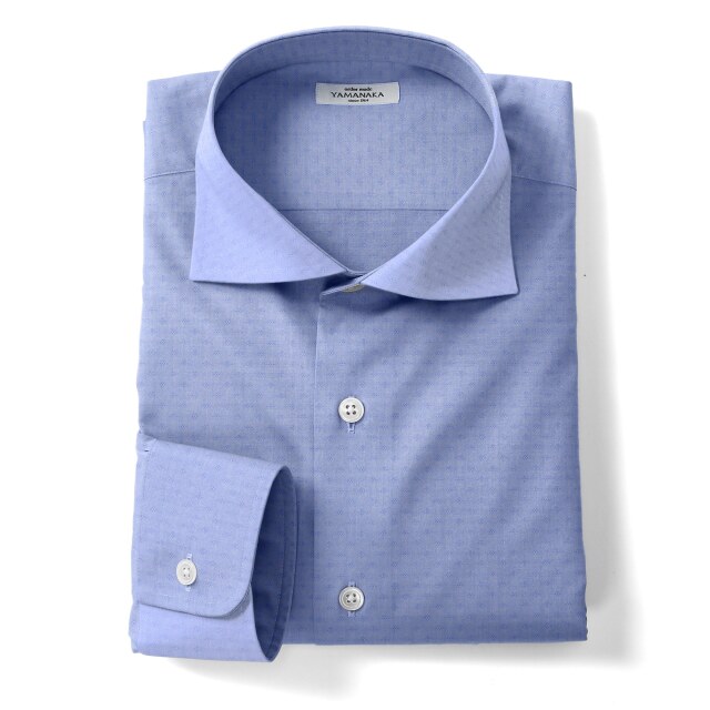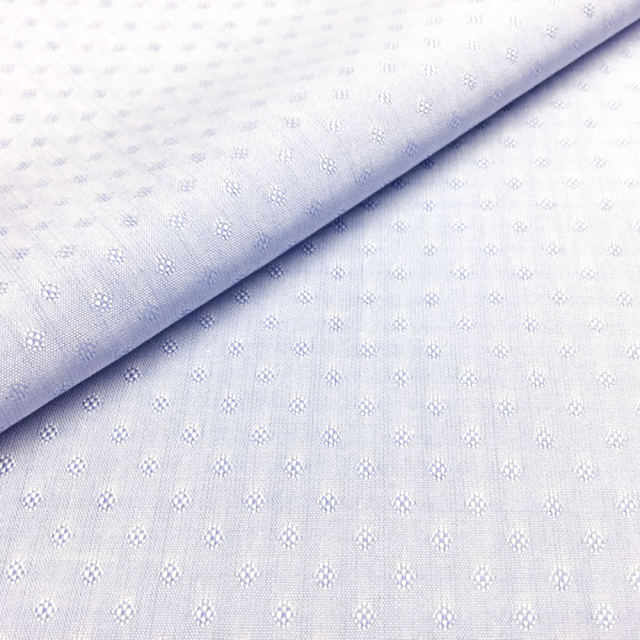 小柄ドットドビー-サックス | 細かいドット状の織り柄、サックス。ビジネスシャツ向き。