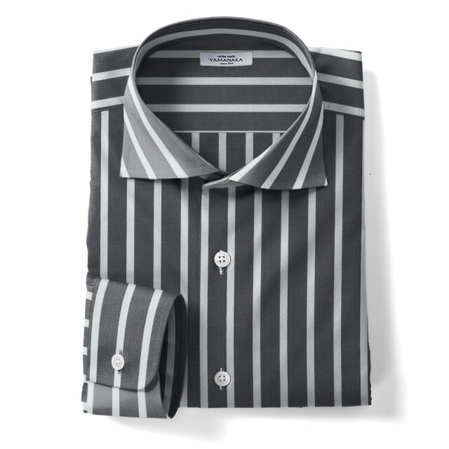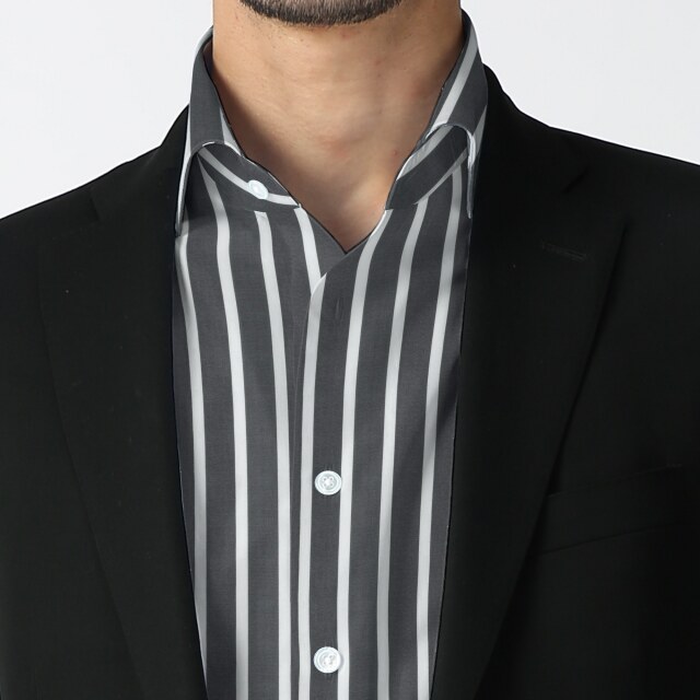 ボールドストライプ-ブラック | 太めのブラックのストライプ。カジュアルシャツ向き。