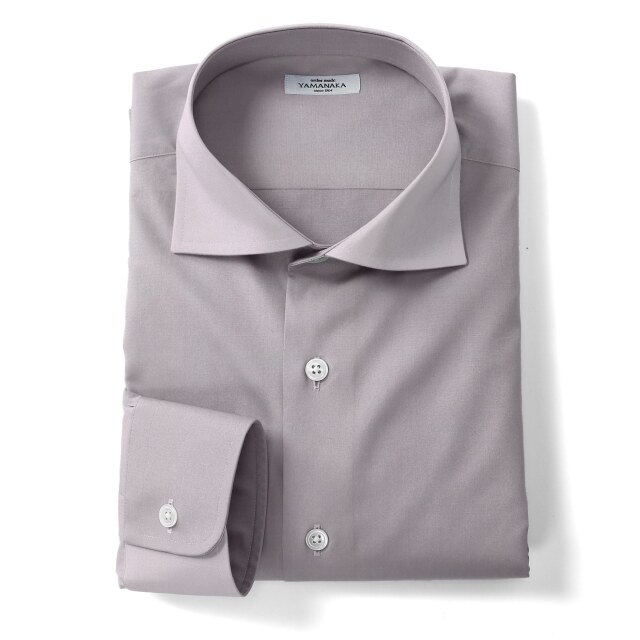 サテン-グレー | 淡いグレー、光沢とドレープが特徴の少しだけ厚めのシャツ生地。ドレスシャツ向き。