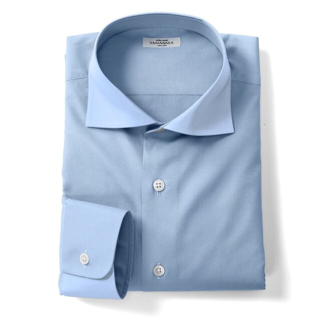 ツイル-サックス | 艶感のある、細かめの斜め綾シャツ生地、淡いサックス。ドレスシャツ向き。