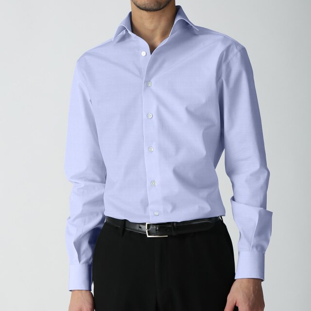 小菱ドビー-サックス | 小さな菱形の織り柄シャツ生地、淡いサックス。ドレスシャツ向き。